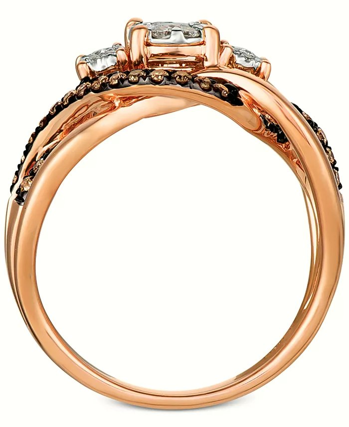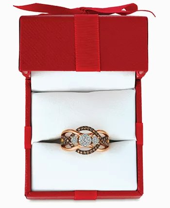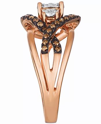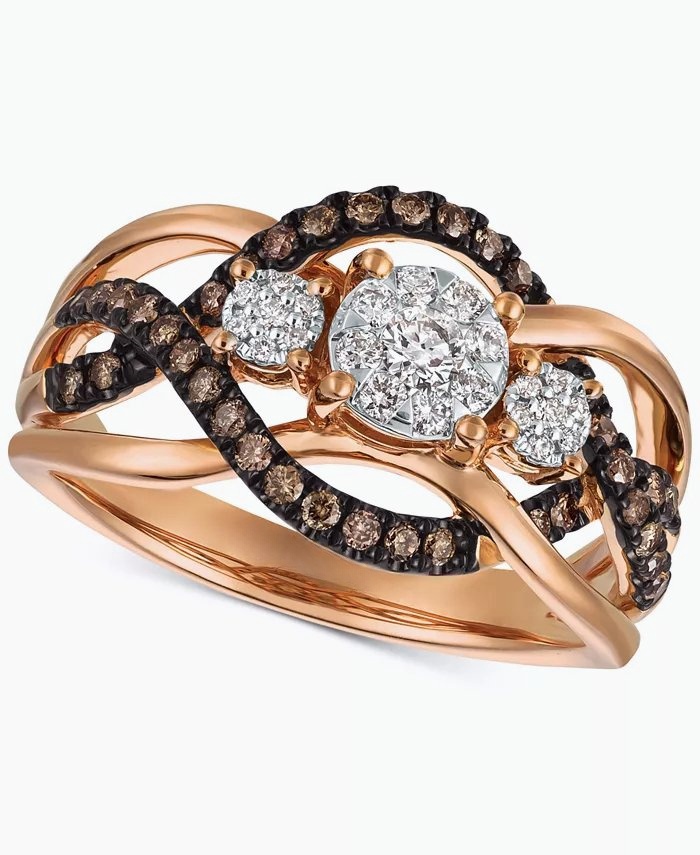 A trinity of round-shape white diamond clusters sits atop an openwork round-shape chocolate diamond accented shank to create this stunning ring (3/8 ct. t.w.) designed.